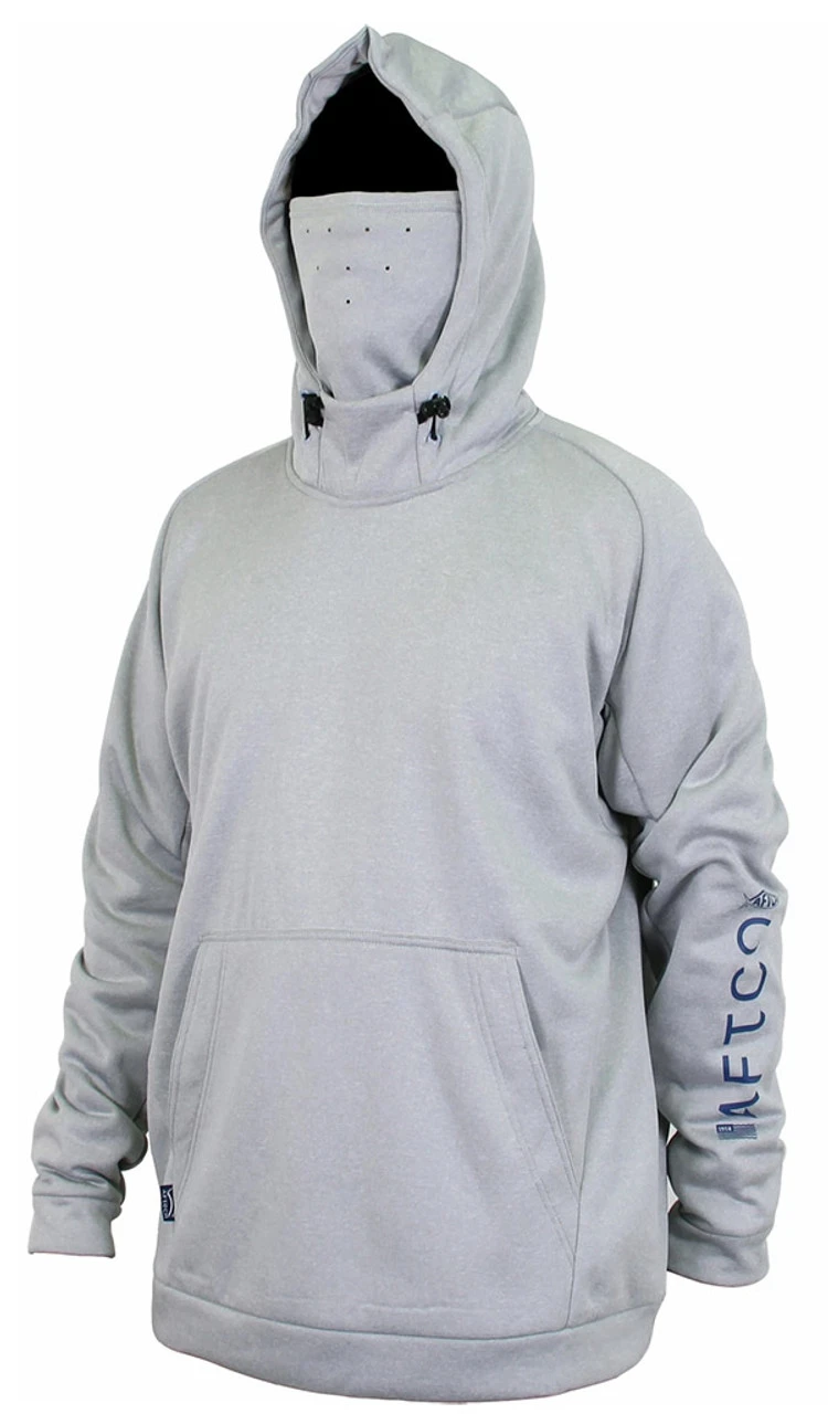 The Aftco Reaper Technical Fishing Hoodie is out to revolutionize comfort in a fishing sweatshirt. It’s made with an integrated face mask and neck warmer for those cool fall or spring days out on the water. Featuring laser cut ventilation on mask and underarms. Ideal for both saltwater and bass anglers with a hood with a cinch shock cord anchoring system that keeps your hood where it is during high speed boating. Great as a layer or a stand alone when you need to keep warm out there. The Reaper hoodie by Aftco is going to quickly become your favorite go to when the weather cools down.