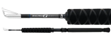 The Daiwa Saltiga G Kite Rod, at 32”, is the perfect tool for managing fishing kites. The Quick Grip butt with aluminum gimbal lifts easily from the rod holder. This Saltiga G Kite Rod matches perfectly with the Tanacom Bull TB1000 power assist reel.