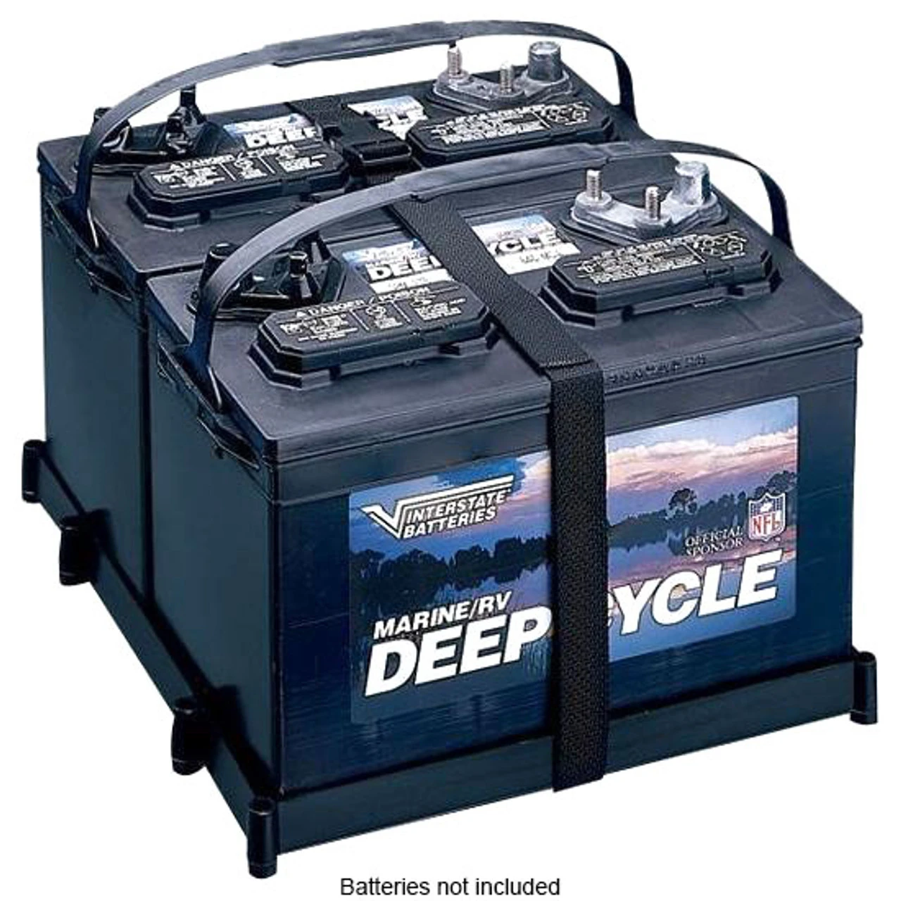 The T-H Marine Dual Battery Holder Tray with Strap is designed to securely install two 27 series batteries in the absolute tightest space. By placing the batteries side-by-side in one tray, the extra space and fasteners for two trays are eliminated. Great for dual trolling motor batteries. Poly strap with quick release buckle makes installation and removal easy. Meets NMMA specs for battery retention.