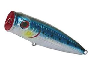 The Tsunami Floating Popper is a top water lure with a fish attracting “popping” and “skirting” action that causes an immediate reaction from predators on the hunt. The Floating Popper features a realistic etched holographic finish, thru-wire contruction, extra sharp VMC Cut Point treble hooks to assure fast hook-sets, stainless steel split rings, and rattles to guarantee explosive top water fishing.