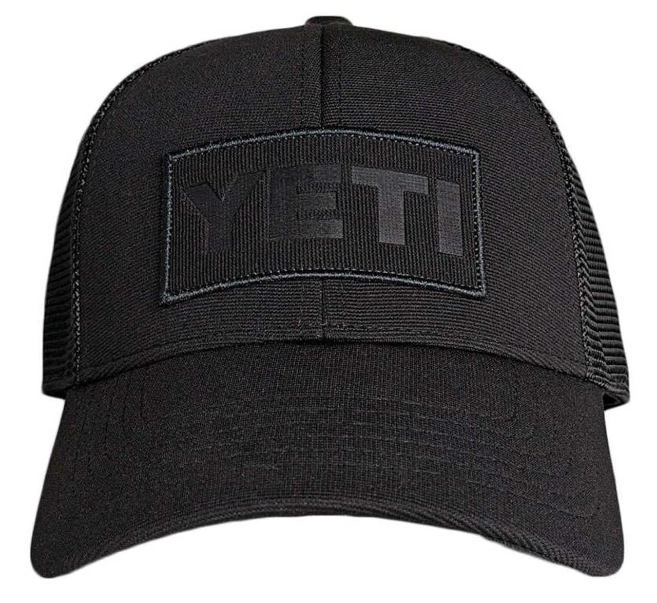 YETI classic trucker hat with black on black patch design. The all black exterior on this trucker hat is made of an Ottoman weave fabric and premium mesh, which provides a soft feel with comfortable mid-profile fit. This hat features a moisture wicking headband to keep your head comfortable even on the hottest days.